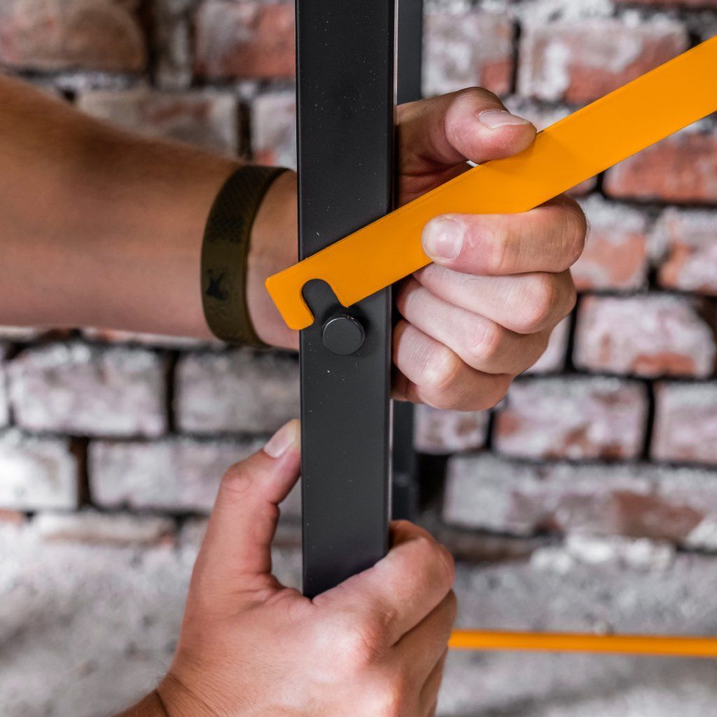 ✅ Bară transversală din oțel cu orificii integrate pentru organizarea uneltelor