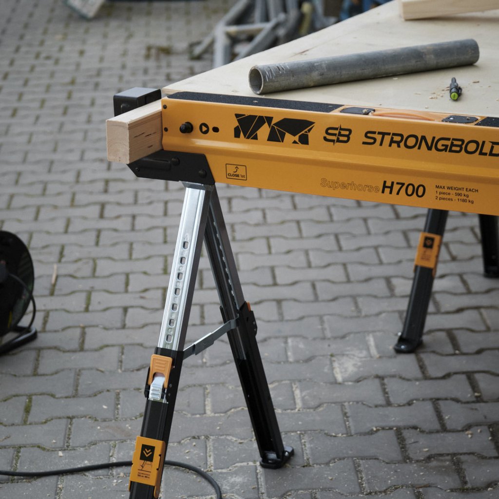 Cu Strongbold, nu trebuie să îți fie teamă să îți duci proiectele la următorul nivel. H700 este potrivită atât pentru profesioniștii exigenți, cât și pentru pasionații de bricolaj care doresc o suprafață de lucru fiabilă și portabilă. Caprele de lucru sunt ideale pentru utilizare cu grinzi de tip 2x4, bușteni sau materiale de tip placă. Poți pune materiale grele deasupra fără să îți faci griji. Când ai terminat, le pliezi rapid și le muți oriunde, în cel mai scurt timp.